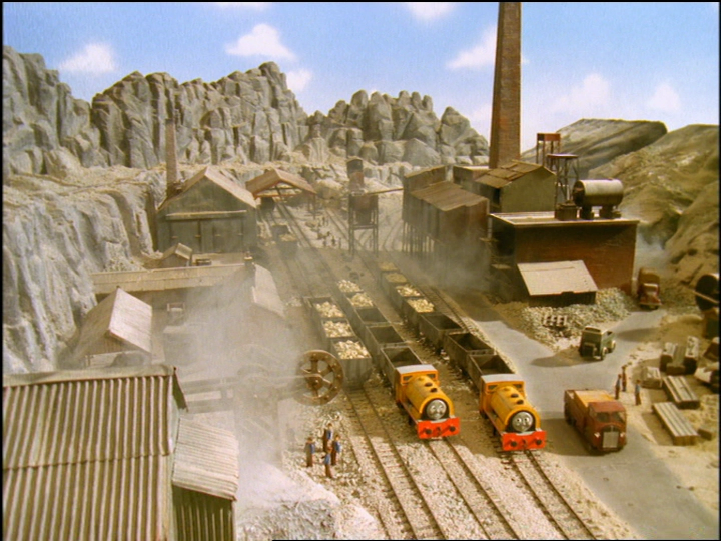 - В мультфильме «Покидая Содор» одно из зданий глиняного карьера было повторно использовано в качестве материковой фабрики.